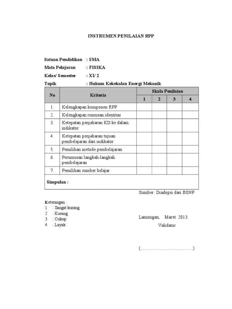 Intrumen yang digunakan pada penelitian ini adalah lembar validasi dan lembar angket respon siswa. Lalu bagaimana model rpp yang baik ? Pembelajaran pada kurikulum 2013 disarankan berbasis pendekatan sientific. Terkadang rpp yang disusun hanya mengejar kelengkapan administrasi dan pertanggungjawaban bahwa mereka sudah melaksanakan tugas perencanaan pembelajaran. Kurikulum yang kita pakai adalah kurikulum 2013 revisi terbaru yakni 2019. Rencana pelaksanaan pembelajaran (rpp) a. Aspek 1 2 3 4 5 1 perencanaan a. Lampiran 7 instrumen penilaian rpp. Membuat karya kincir angin sederhana nama siswa : Demikianlah file rpp kurikulum 2013 ini semoga dapat membantu. Lampiran 7 instrumen penilaian rpp materi pelatihan 3 : Sistem komputer smk/mak kelas x semester i dan ii. Instrumen penilaian proyek nama projek :