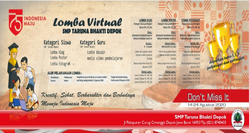 Kehidupan sekolah, informasi alumni dan berita terkini di smp taruna bhakti. Memilki fasilitas yang lengkap, mulai dari laboratorium komputer, fisika, biologi, kimia, ptd, kiddie pool, gor taruna bakti dengan lapangan basket standar . Smp taruna bhakti depok address •; Return to article details perancangan web perpustakaan pada smp taruna bhakti depok download download pdf. Petunjuk ke smp taruna bhakti (depok) dengan transportasi umum.